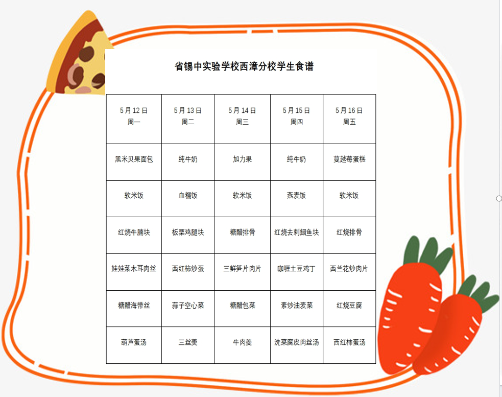 省锡实西漳分校每周学生菜单(5月12日——5月16日)