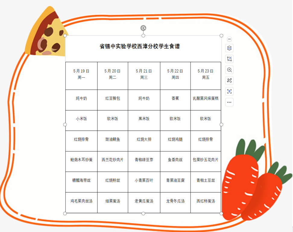 省锡实西漳分校每周学生菜单(5月19日——5月23日)